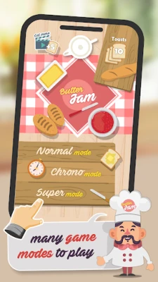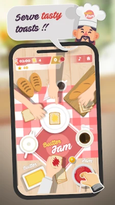 Butter Jam let you enjoy serving toasts by remembering clients order. All you have to do is serving as much clients in the right time. Never forget the right toast for each client, fun is at the tip of your fingers.