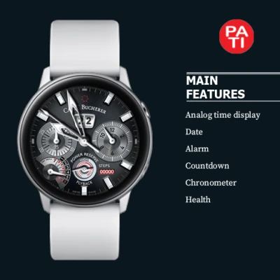 Carl F. Bucherer Patravi ChronoGrade Watch Faces for Wear OS, modern digital watch face made with modern design focused on legibility and usability.
