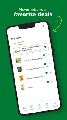 Check out the current Co+op Deals available from participating community-owned food co-ops near you. Explore deals, access store information, favorite the stores you shop and the products you love, create and share shopping lists, and more!