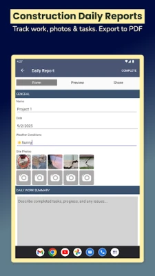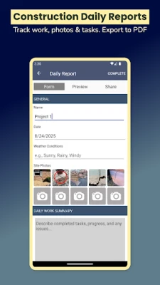 * Daily Reports: Create, sign, and send comprehensive daily report PDFs.