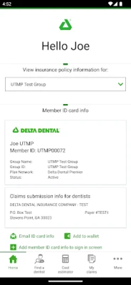 Delta Dental Mobile App features - Mobile ID card: No need for a paper card. View and share your ID card from your phone, and easily save it to your device for quick access, including Apple Passbook and Google Wallet.