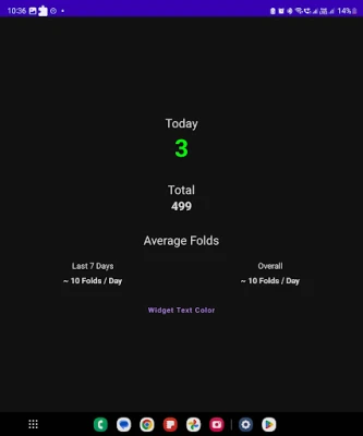 Our app makes it easy to keep track of how many folds you make daily and overall. With a simple and intuitive interface, you can easily access your fold count by launching the app or adding a widget to your home screen.