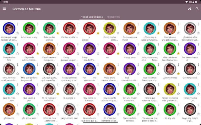 Esta aplicación contiene más de 50 frases de Carmen de Mairena para que puedas reproducirlas en cualquier momento, ¡sin necesidad de tener conexión!