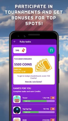 Click on the big button at the bottom of the screen to get to the challenge sections. You will get tons of bonuses as the bonus sections are updated every day! As well as the usual adverts or app downloads, you will find mini-game tournaments to complete. Compete with other players and be rewarded for making the leaderboard.