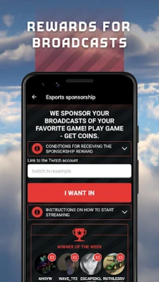 If you like to stream games on your channel, we're willing to reward you and show your broadcast to a wider audience! Simply follow the instructions in the Cybersport section and earn a weekly reward!