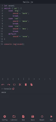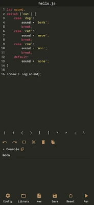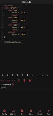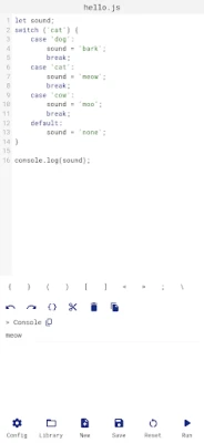 * The output should be displayed using console.log or other console methods. * This application is intended for simple scripts and quick tests. * The JavaScript version used for running the scripts is the JavaScript version of the WebView available on the device.