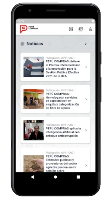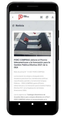 La aplicación de la Central de Compras Públicas brinda una ventana informativa al ciudadano, el cual podrá mantenerse informado sobre las noticias de las herramientas que brinda PERÚ COMPRAS, así como validar la autenticidad de las Ordenes de compras del módulo de Catálogos Electrónicos de Acuerdos Marco.