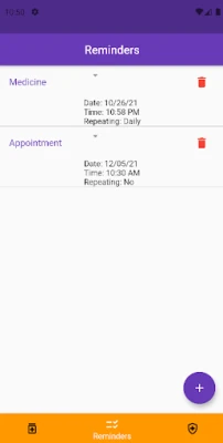 An app to keep track of medications, appointments, and reminders of the user. Detailed list of attributes of one's necessary reminders in life.