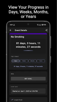 Set personal goals like "30 Days No Junk Food", "100 Days of Daily Exercise", or even "14 Days Without Missing a Plant Watering", and celebrate your progress.