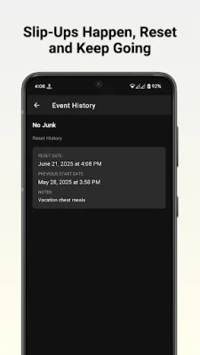 View the complete history of every reset to monitor your consistency and improvement.